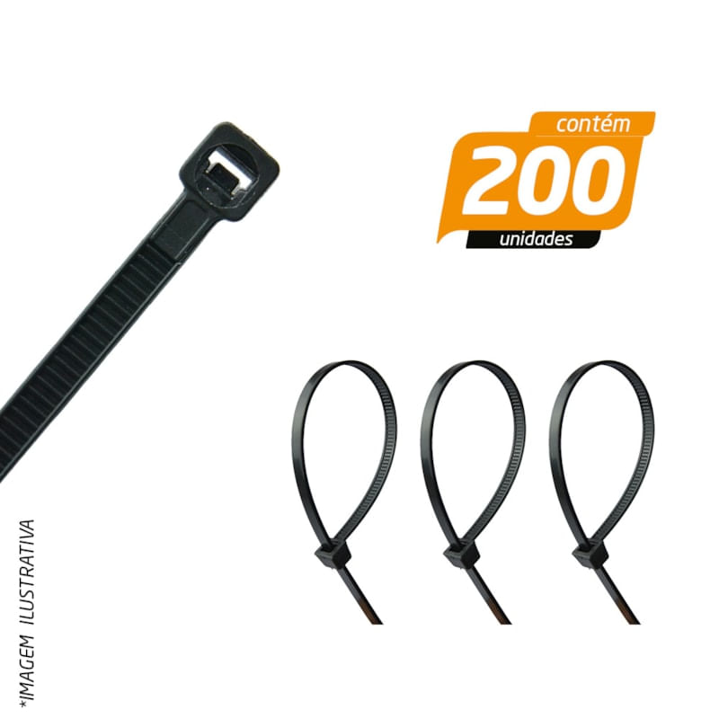 Abraçadeira de Nylon Preta 2,6 x 1 x 100mm - Guinner - 200 Unidades