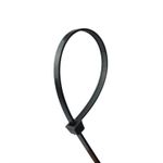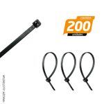 Abraçadeira de nylon preta indicada para uso doméstico e industrial, para fixações diversas, cabos elétricos (chicotes), veículos, bicicletas, motor, embalagens, serviços gerais, etc. Desenvolvida para resistir aos raios ultravioletas e às intempéries.