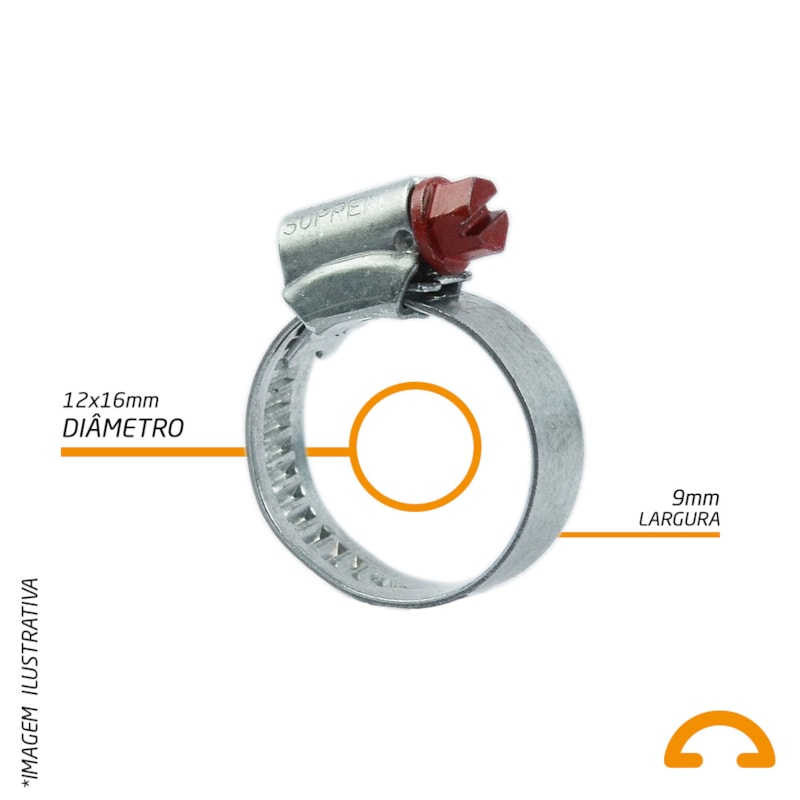 Diâmetro Mínimo da Abraçadeira Rosca Sem Fim: 12mm