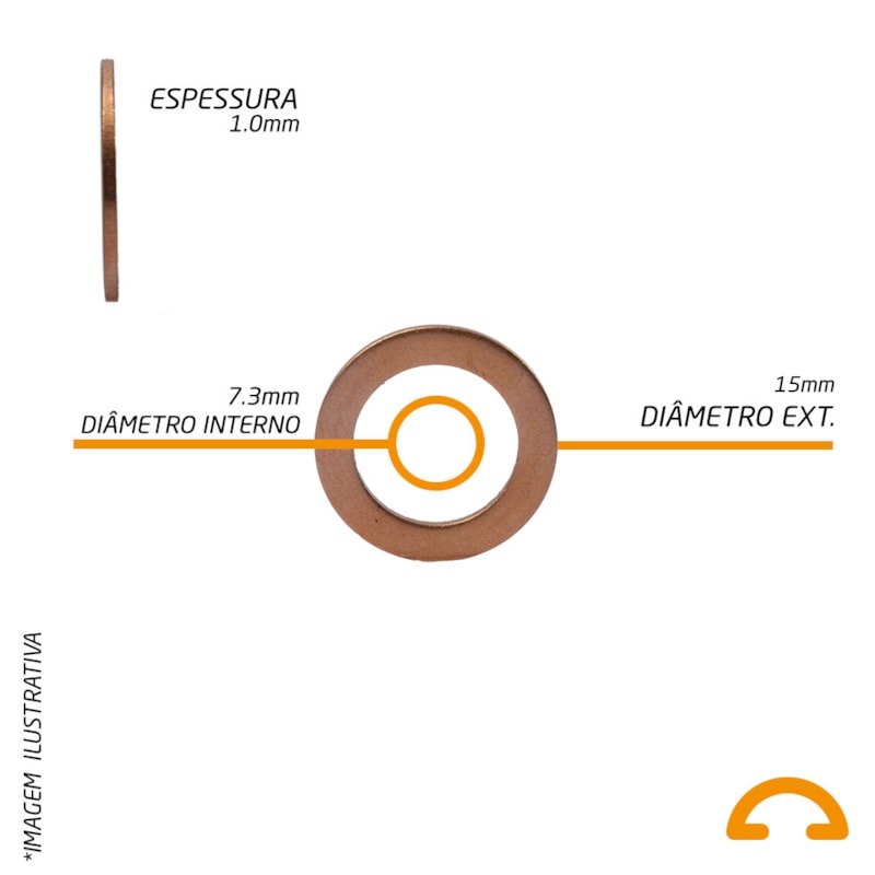 Arruela de Vedação em Cobre 7,3 x 15x1mm - 50 Unidades