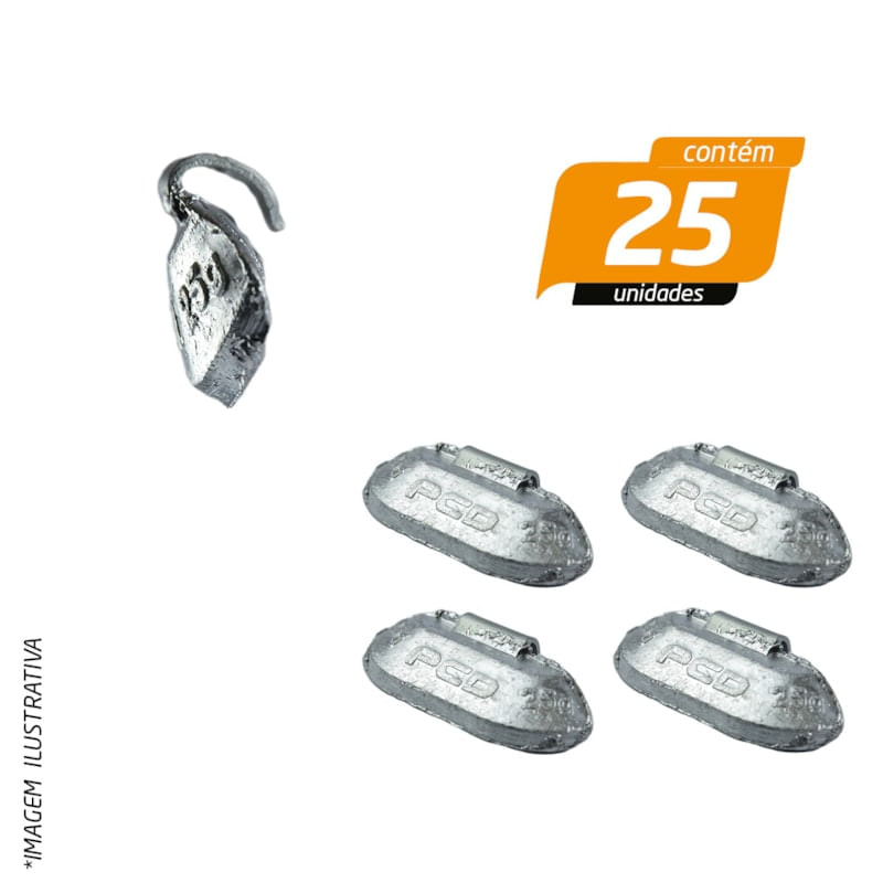 Contrapeso 25g com Garra Baixa em Chumbo para Rodas de Aço Linha Leve Universal - Procad - 25 Unidades Contrapeso 25g com Garra Baixa em Chumbo para Rodas de Aço Linha Leve Universal - Procad - 25 Unidades