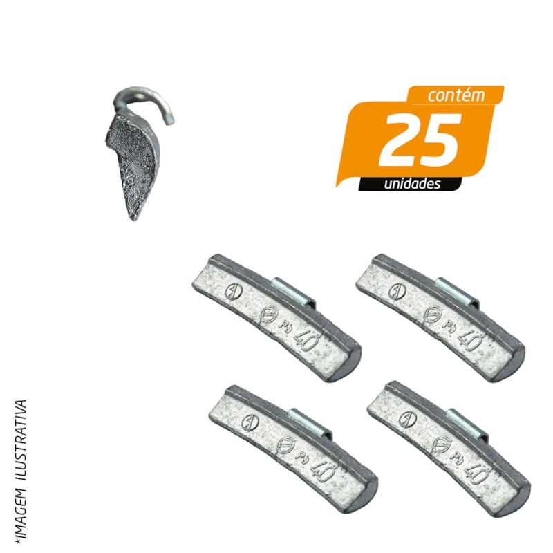 BorrachariaContrapesoContrapeso 40g com Garra Baixa em Chumbo para Rodas de Aço Linha Leve Fiat - Stampjet - 25 Unidades