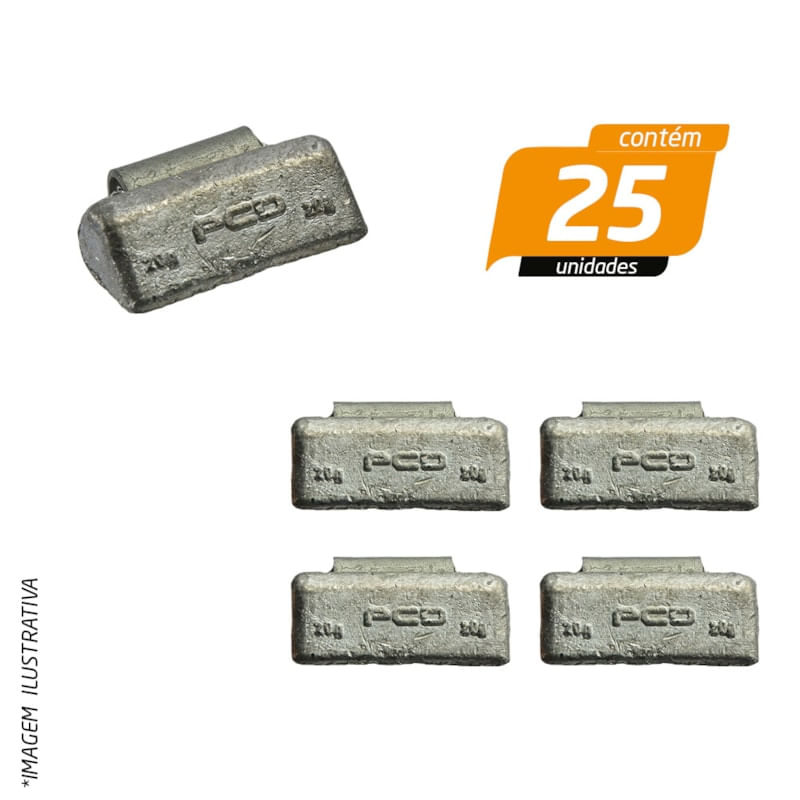 BorrachariaContrapesoContrapeso com Garra Alta em Chumbo para Roda Liga Leve Universal 20g - Procad - 25 Unidades