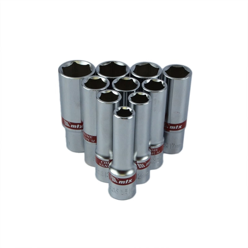 Jogo de Soquete Sextavado Longo 1/2' 10 Peças - MTX