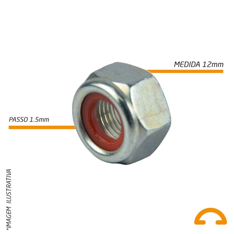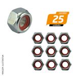 Porca Sextavada Zincada Auto Travante Nylon 12 x 1,25mm - 25 Unidades