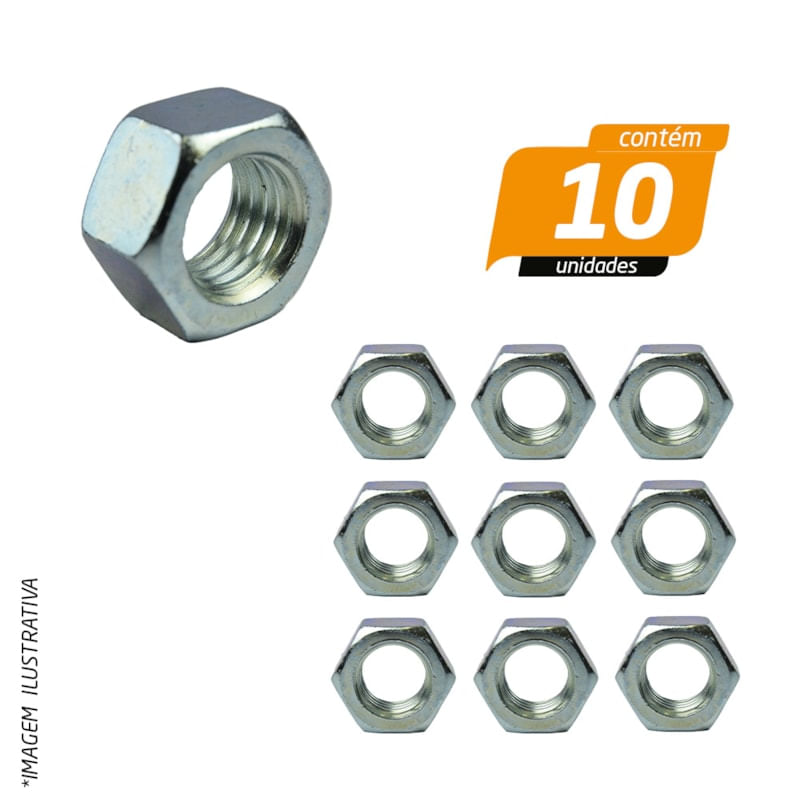 Porca Sextavada Zincada Rosca NC 3/4' - 10 Unidades