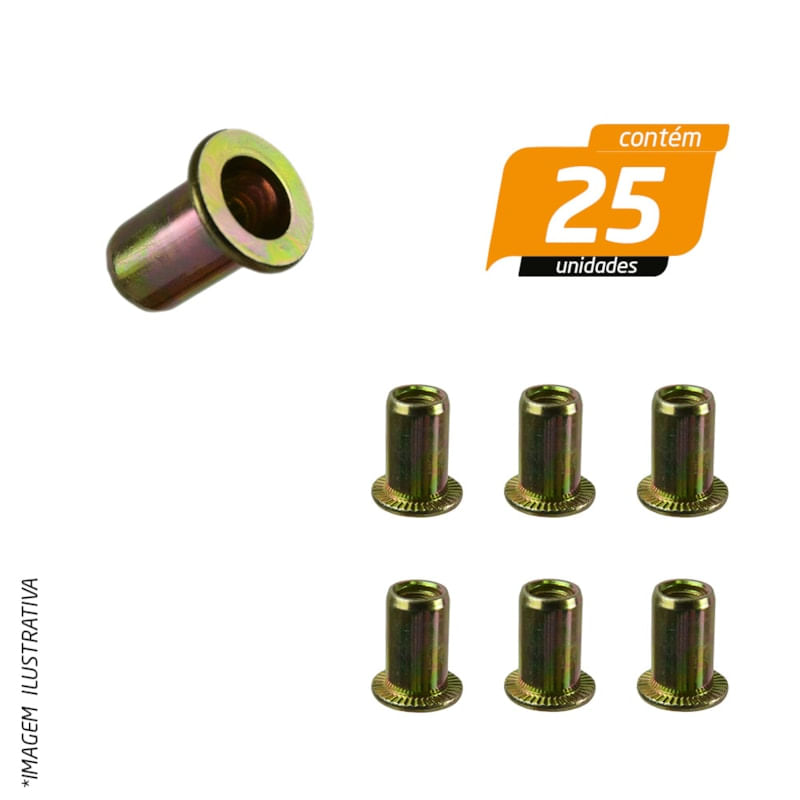 Rebite Tubular com Rosca Interna M6 1,25 x 16mm - 25 Unidades