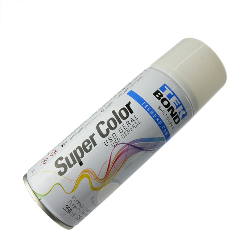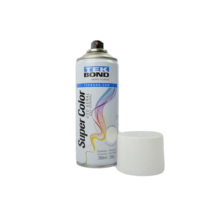 Tinta Spray Branco Brilhante 350ml Acrílica Secagem Rápida Uso Geral Super Color TekBond